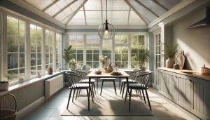 Make your orangery an elegant dining area where you can enjoy meals with a garden view. This setup is perfect for entertaining guests or having family dinners. Here’s how to create the perfect dining space: